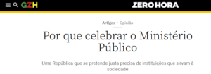 Um artigo do presidente da FMP, Procurador de Justiça Luciano de Faria Brasil, foi destaque na versão digital do Jornal Zero Hora neste fim de semana. O texto celebra e exalta o papel fundamental do Ministério Público no sistema de Justiça. Confira o texto.