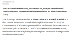 Um artigo do presidente da FMP, Procurador de Justiça Luciano de Faria Brasil, foi destaque na versão digital do Jornal Zero Hora neste fim de semana. O texto celebra e exalta o papel fundamental do Ministério Público no sistema de Justiça. Confira o texto.